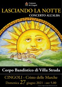 CINGOLI, 25 giugno 2021 – Il “Cristo delle Marche” si prepara ad accogliere il Corpo Bandistico di Villa Strada per il Concerto all’alba “Lasciando la notte”.