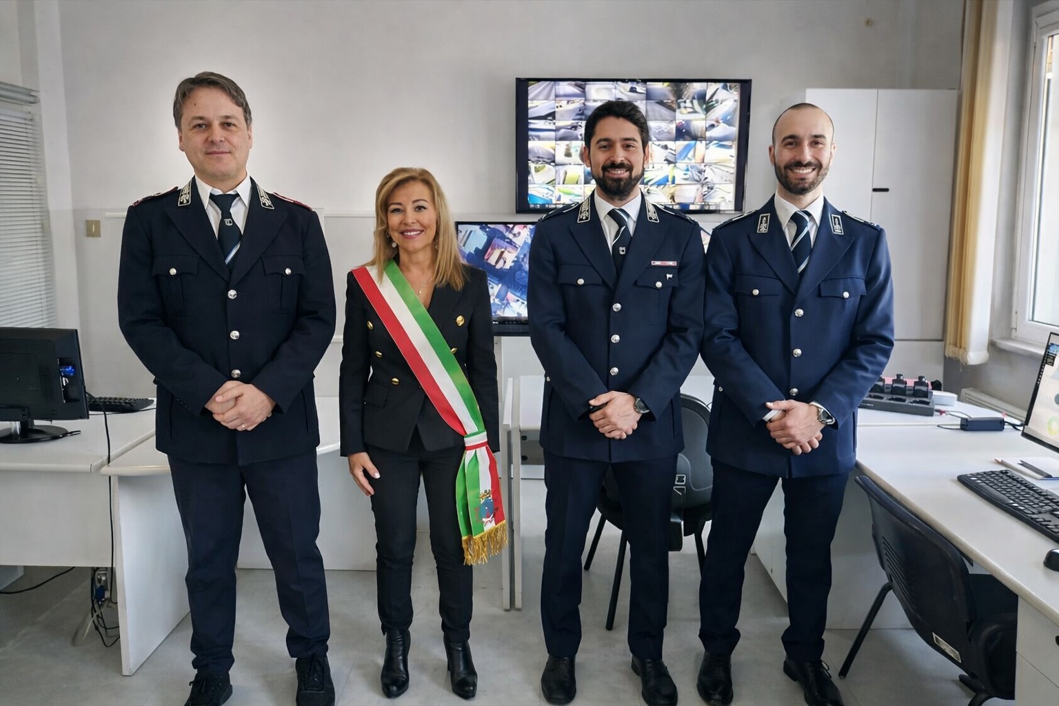 (foto in primo piano, la sindaca Stefania Signorini con il comandante della Polizia Locale, Luciano Loccioni, e gli agenti)