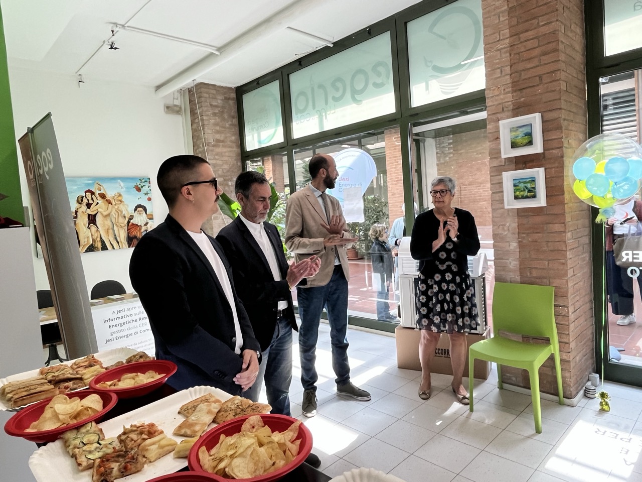 L’apertura è stata anche l’occasione per ufficializzare la collaborazione con Jesi Energie di Comunità, una sinergia che guarda allo sviluppo di modelli di consumo più consapevoli e alla diffusione delle fonti rinnovabili, con particolare attenzione ai pannelli solari sul territorio.