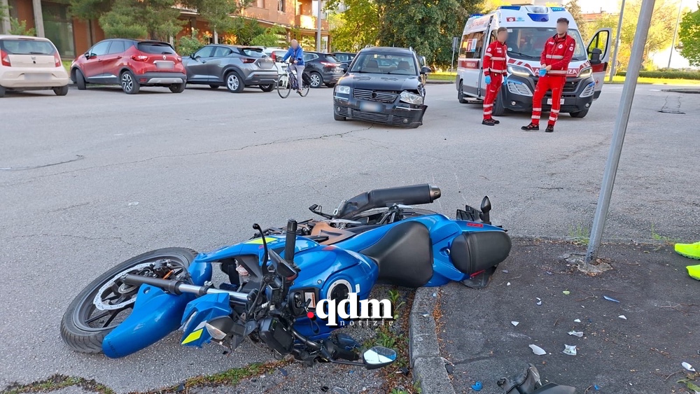 L’impatto ieri intorno alle 18 in via Bachelet, nei pressi della rotatoria di via Coppi, sul posto l’ambulanza della Croce Rossa e una volante della Polizia per i rilievi