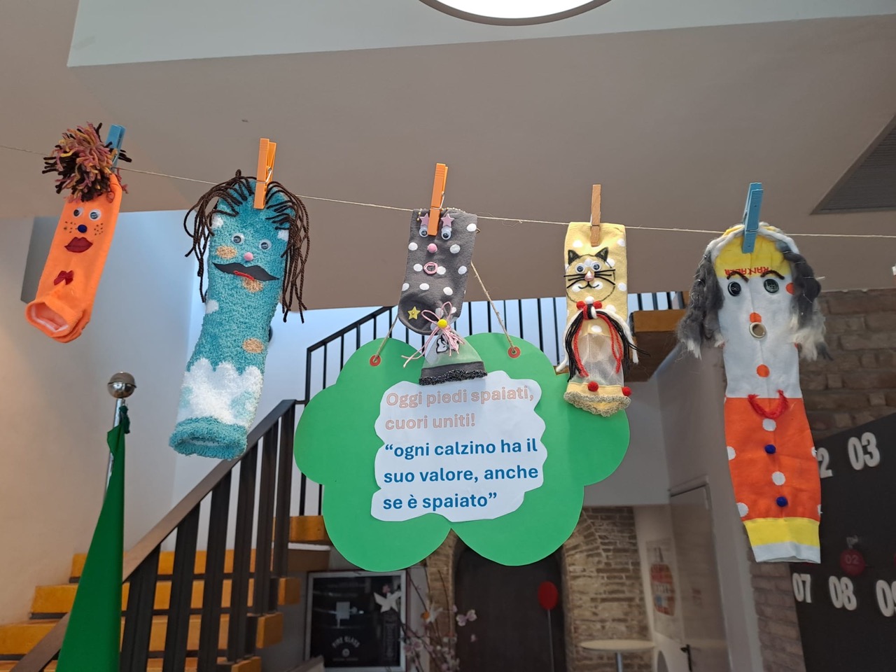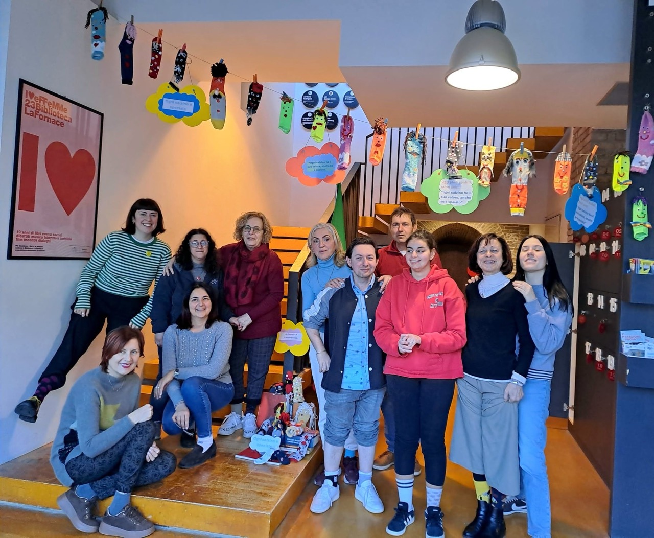 In occasione della “Giornata dei calzini spaiati”, i ragazzi e le ragazze del Book Box, insieme ai volontari, hanno dato spazio alla creatività e all’inclusione realizzando calzini colorati accompagnati da frasi e messaggi ricchi di significato. Le loro creazioni sono state sistemate all’ingresso della biblioteca, per sottolineare come quegli spazi siano un luogo di incontro e riflessione sul valore della diversità, dell’unicità e dell’importanza di sentirsi accolti, anche quando si è spaiati