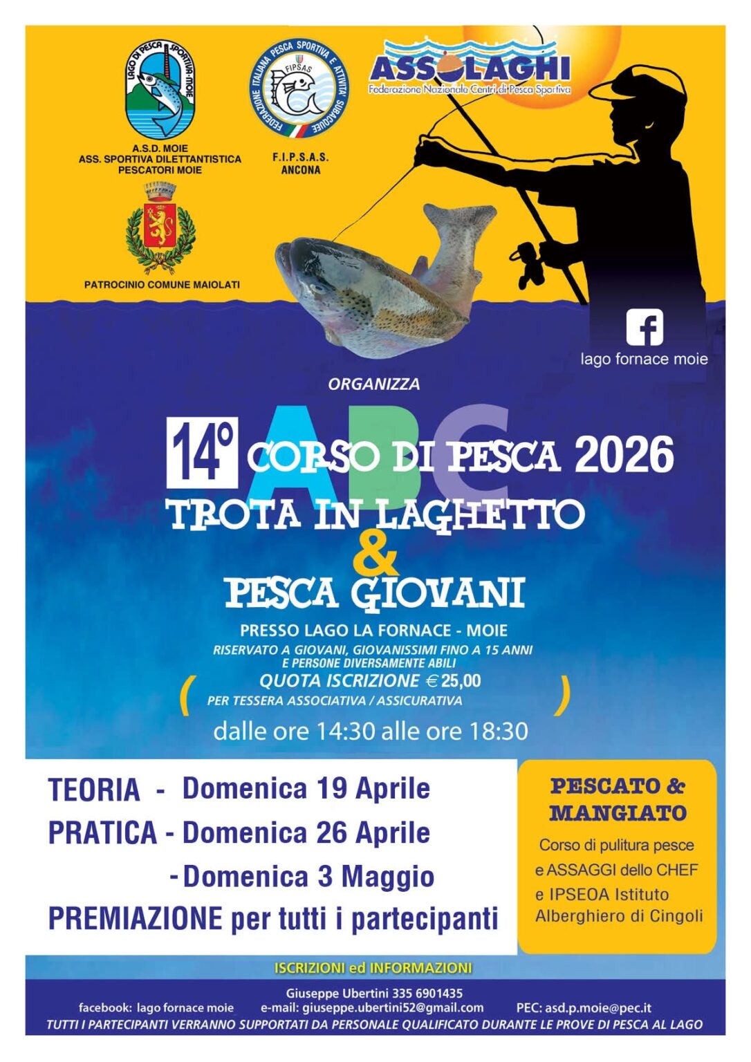 Organizzazione dell’Asd Pescatori di Moie affiliata ad Assolaghi e alla Fipsas, in collaborazione con la locale sezione Avis, con il patrocinio del Comune di Maiolati Spontini. Il corso è riservato ai giovani fino a 15 anni di età e a persone diversamente abili.