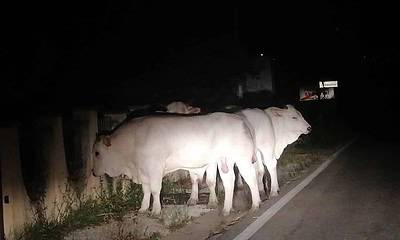 Domenica sera un giovane in Vespa se li è trovati di fronte dopo una curva, erano fuggiti da un'azienda agricola dove sono rientrati lunedì mattina dopo...